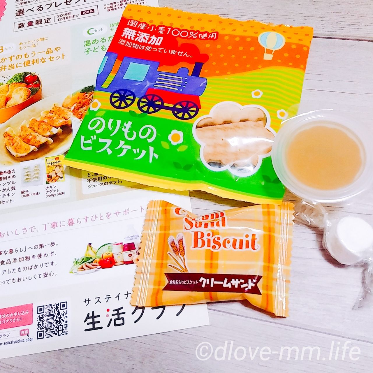 「生活クラブ」では、無添加のビスケット🍪やゼリーなどのお菓子をサンプルで貰いました。